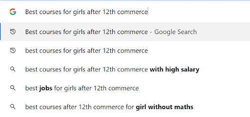 For example, typing "courses after 12th commerce" might show suggestions like: