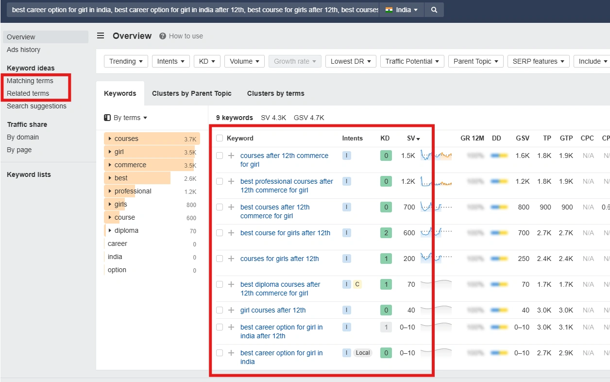 Once you have a big list of keyword ideas, it’s time to filter them down. You don’t need to use all of them; just pick the ones that are most relevant and useful for your blog. To do that, check two important things: search volume and keyword difficulty.