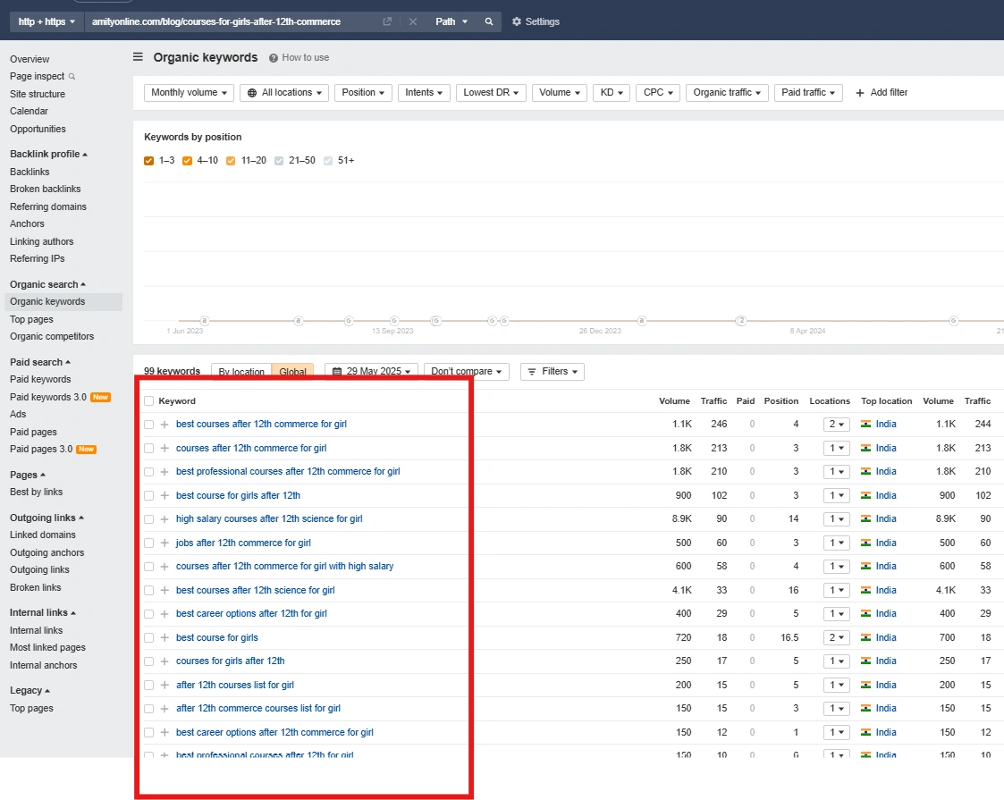 - “Job-oriented courses after 12th commerce for girls” – Lower volume, less competition, more specific
